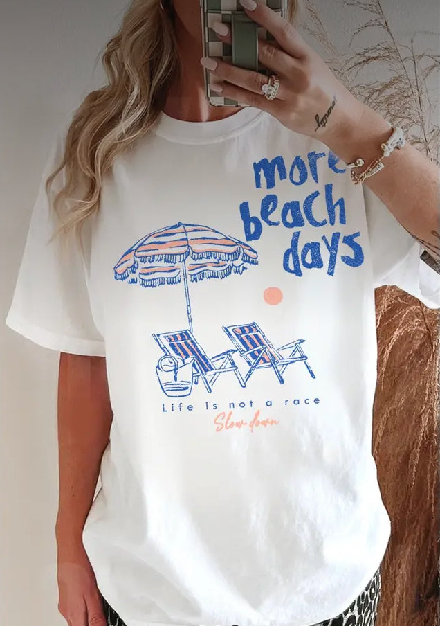 This Beach Days Tee offers a soft and stylish option for effortless outfits. Made from high-quality material, it promises both comfort and fashion. With its cute design, it's perfect for a day at the beach or a laid-back weekend. Elevate your wardrobe with this must-have tee.