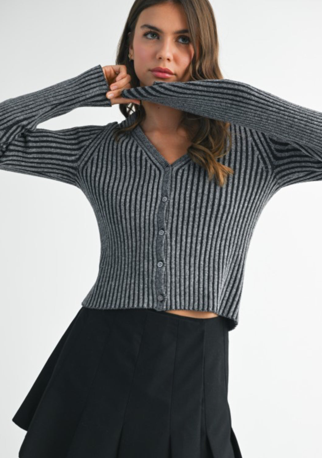 Stay cozy and stylish with our Elain Cardigan. Made with ribbed fabric and a button-up design, this cardigan is both comfortable and chic. Perfect for layering and adding texture to any outfit. Upgrade your wardrobe with this must-have piece.