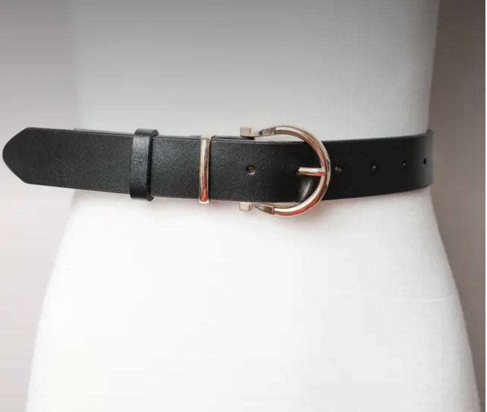 Add a touch of western style to your wardrobe with our chic Horseshoe Gold Buckle Belt. Made with a stunning gold horseshoe buckle, this belt will elevate any outfit. It's the perfect accessory to tie together any look while exuding a touch of sophistication and charm.