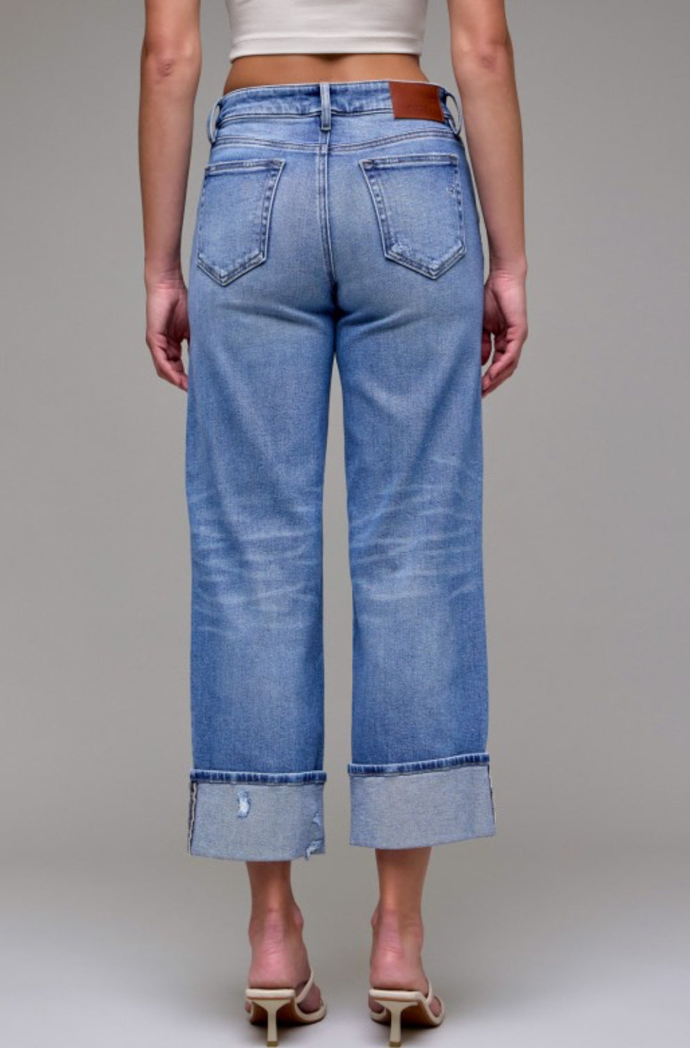 The Marlowe MR Jean offers a stylish twist on the classic dad jean with a mid rise and four inch cuff hem. Its medium dark wash complements any outfit while providing a comfortable fit. Perfect for a modern, yet timeless look.
