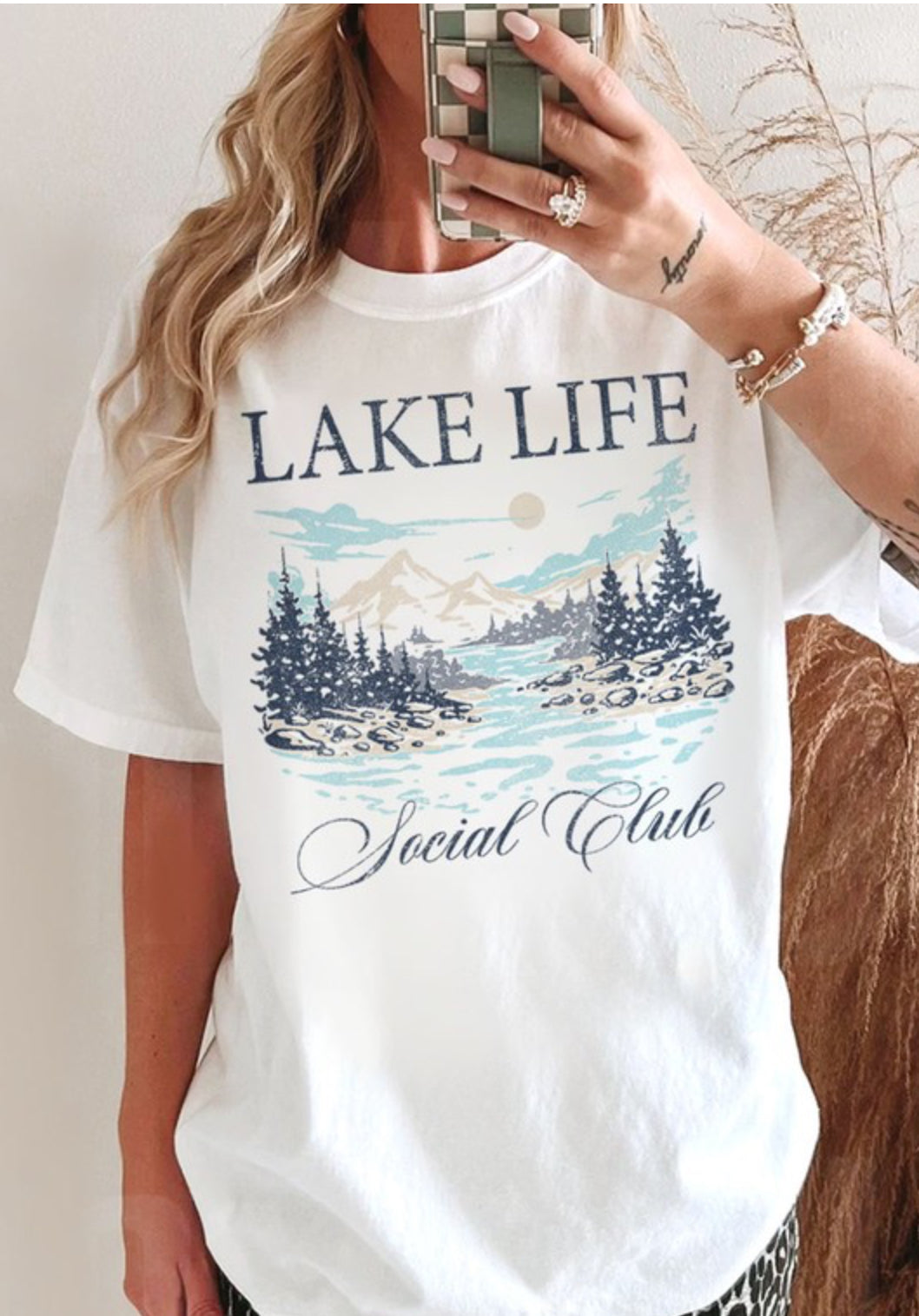 This Lake Life Graphic Tee is the perfect addition to your summer wardrobe. Made with 100% preshrunk cotton, this oversized tee is not only comfortable but also a great way to show off your love for the lake life. The social club graphic adds a touch of style to this must-have tee.