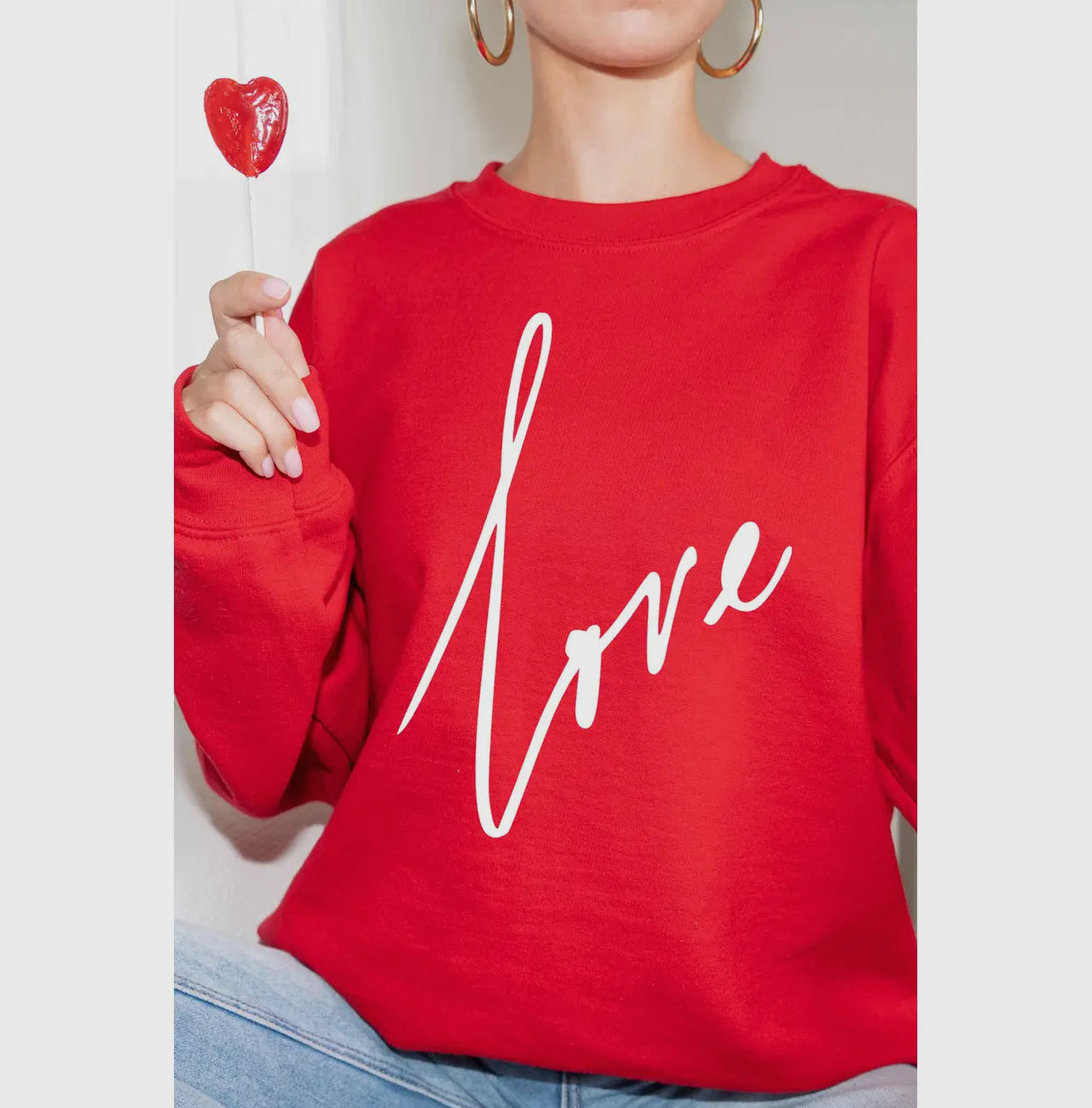 This Love Sweatshirt is a must-have for Valentine's Day! Featuring a classic crewneck design, it proudly displays the word "Love" on the front. Show your love in style and comfort with this statement piece.