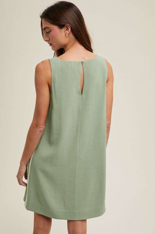 Effortlessly stylish and practical, the Melody Mini Dress features a side-striped A-line design, back keyhole with button closure, and convenient side pockets. With its flattering silhouette and lining, this dress is perfect for any occasion. Expertly crafted for comfort and style.