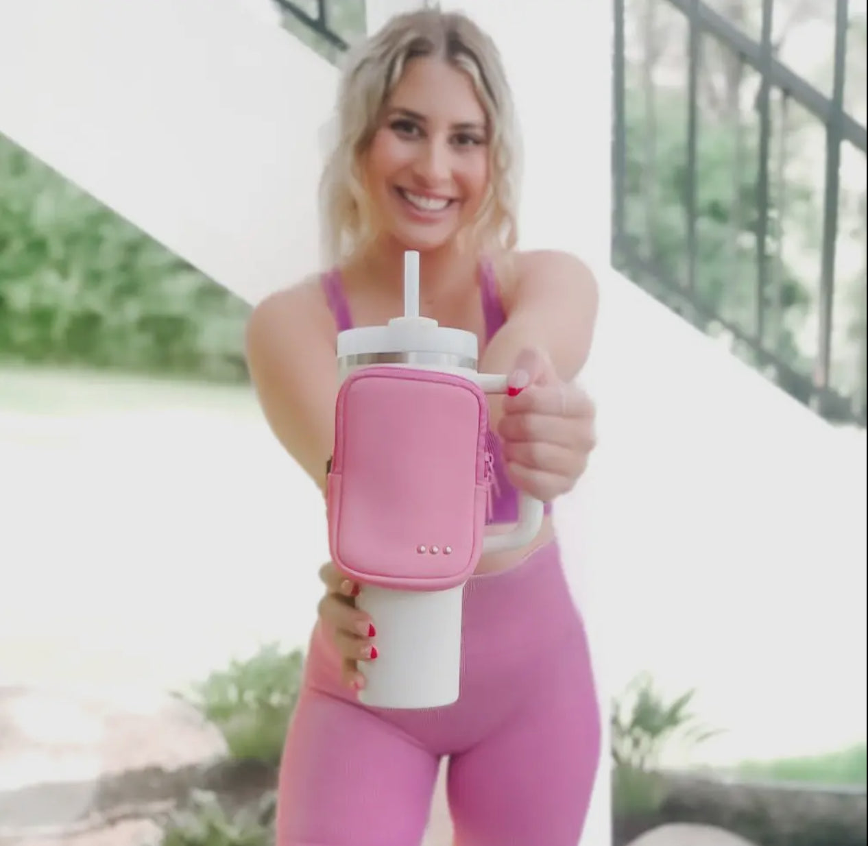 Elevate your on-the-go lifestyle with our On the Move Pouch. This convenient pouch easily attaches to any 32 or 40 ounce tumbler, keeping your essentials within reach. The zipper close and velcro strap ensure secure storage, while the cute design adds a touch of style to your daily routine.